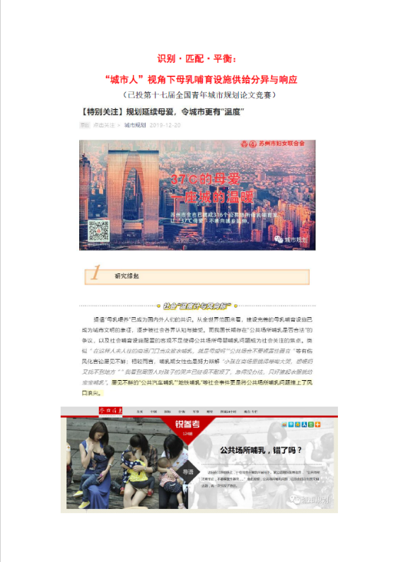 “基于‘以人为核心’新型城镇化建设背景,本文写作聚焦城市母乳哺育设施供给这一痛点难点问题,尝试从‘城市人’理论出发,以‘需求导向的人居供给、使用导向的人居配置、发展导向的人居运营’为要点,通过苏州市实证,探索‘识别需求-匹配供给-平衡响应’三阶段过程。借此机会,与大家分享相关思考,也期待共同探讨文章的改进之处。”
