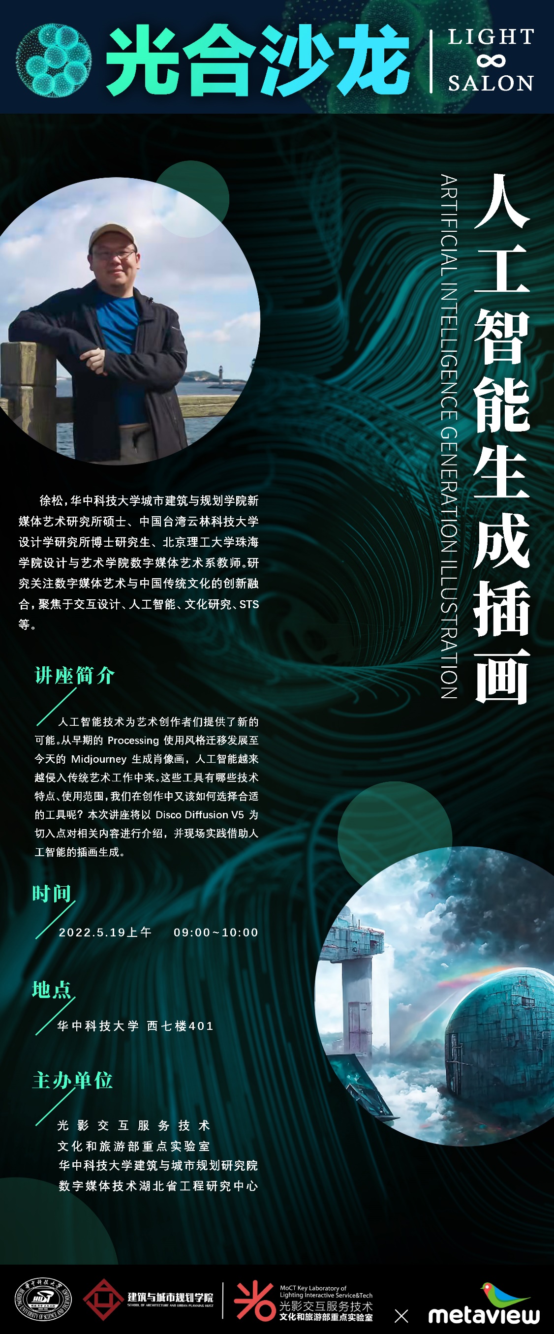 人工智能技术为艺术创作者们提供了新的可能。从早期的Processing使用风格迁移发展至今天的Midjourney生成肖像画,人工智能越来越侵入传统艺术工作中来。这些工具有哪些技术特点、使用范围,我们在创作中又该如何选择合适的工具呢?本次讲座将以Disco Diffusion V5为切入点对相关内容进行介绍,并现场实践借助人工智能的插画生成。
