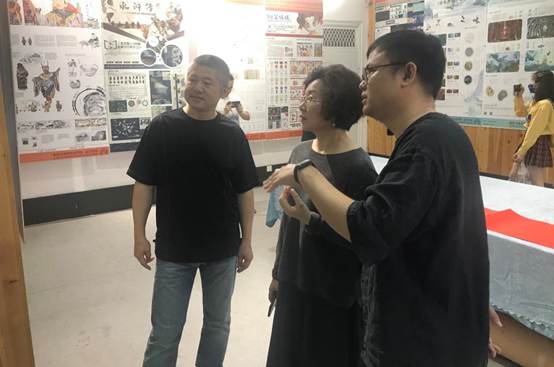 设计学系副主任王祖君向黄亚平经理、蔡新元副经理介绍本次展览情况
