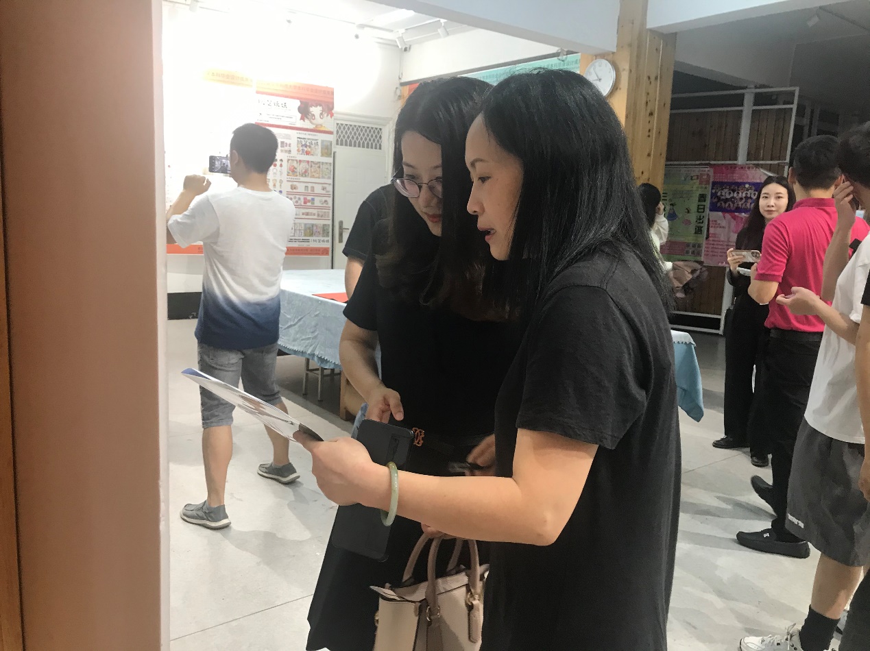 设计学系系主任白舸教授向黄亚平经理介绍毕业生情况
