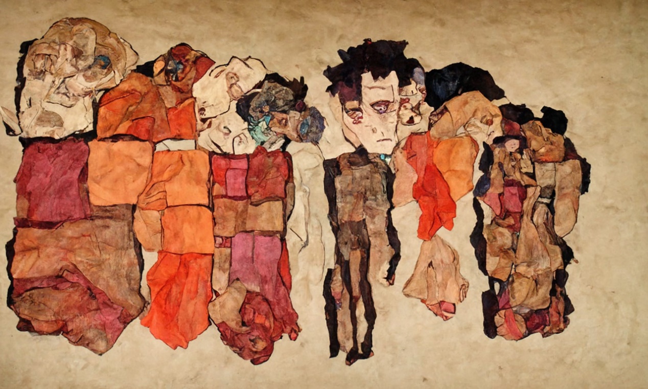 天使(Angle)恶魔(Demon)的形象在AI的数据库里结合,文艺复兴时画家常常以他们为命题,AI对他们的画进行参考,画面呈现出一种复古油画的感觉。20分钟内画面逐渐生成,阴郁暗沉的氛围,不在有缤纷的色彩,一切沉寂了,消失了,死去了,描绘出了谈及“death”时的情感,死亡真是非常无聊,这是死亡最糟糕的地方。