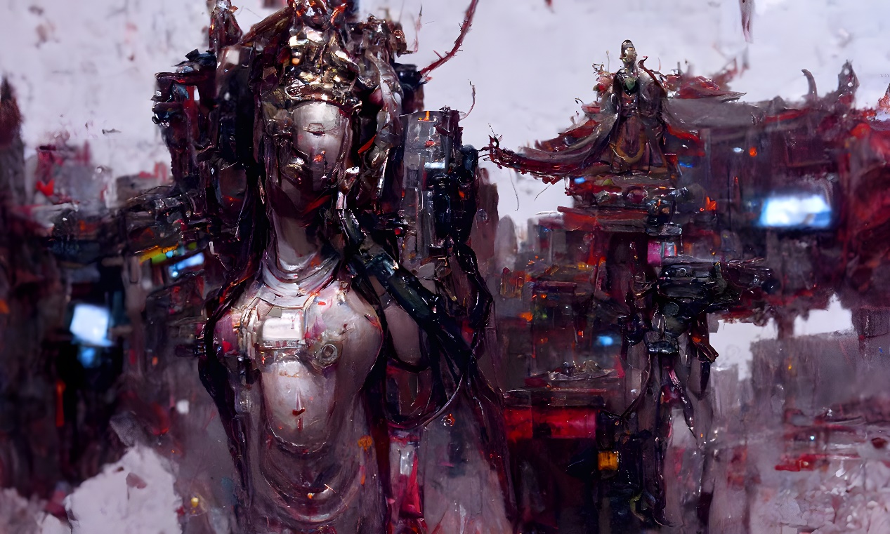 在“赛博朋克”语境下,人们在探讨机械与人性时,人类精神世界最显而易见的投射——神性又是怎样的?被技术异化和控制的神,是否还是“神”, 商品崇拜与极端的技术崇拜达到巅峰的时候,神性是否还会存在,是否会让位于一种极致的、没有丝毫感情的机械性?