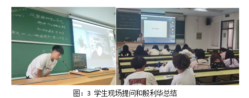 讲座结束后,同学们踊跃提问,主持人殷利华最后对讲座进行总结(图3),指出嘉宾宋本明基于个人亲身经历和感悟,提出并强调人生“不定义”,可以创造出更多的成功。殷利华也希望同学们多多思考如何发掘自己的热爱,在自己喜欢的行业内扎根,设计出属于自己的灿烂人生。