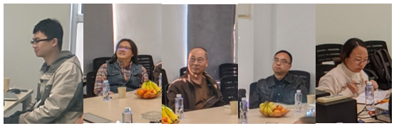 图4 团队老师依次发言(从左至右:教学秘书陈明、龚建、徐昌顺、郭晓、殷利华,拍摄:翟磊、殷利华)