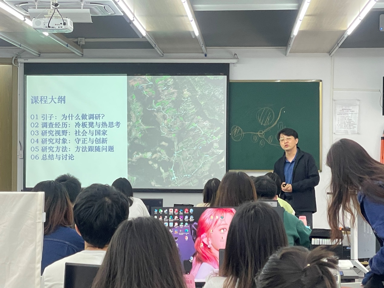 2023年4月14日,受《社会调查研究方法与实践》课程组邀请,城市规划系乔杰老师于南四楼N204教室为规划20级同学开展一期生动的有关乡村调研的专题讲座。