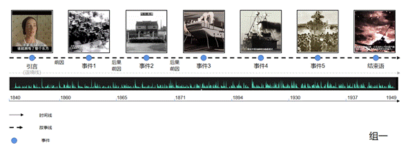 实验设计组一采用的是当下使用最广的历史文化展示空间设计思路,从引言至结束语,按照事件发生的顺序依次将所需要展示的事件排列,每一个事件都是前一个事件的“后果”,也同时是后一个事件的“前因”,它是一个事件的发生器。