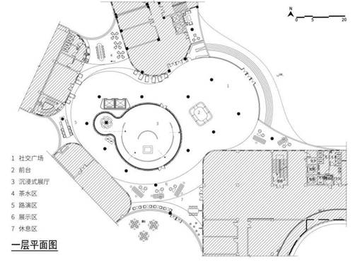 笔者通过实地调研和案例分析对历史文化展示空间的空间叙事进行了整理,根据蒙太奇的适用性将其归纳出三大板块:①场景单元、②文本序列、③连续感知。每个板块与其他板块既相互区别又相互联系,共同构成完整的历史文化展示空间的空间叙事。借用屈米的拉维莱特公园设计图纸,笔者绘制出三大板块示意图。③信息传递——文化交流的“会客厅”