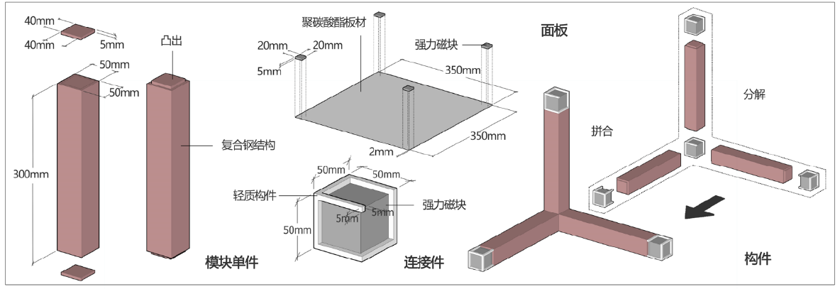 借鉴传统工业中的模块划分方式将公寓室内各组成部分也划分为:产品、部件、组件这三种由大到小的级别(图6)。其中组件为最基础的最小化功能模块,如室内的卫生间模块、厨房模块、玄关模块等,通过不同组合方式组合成一种户型,由此形成部件级的户型套装;利用社区化的设计策略将户型套件与公共空间套件进行有序合理设计组合即形成产品级别的公寓空间设计本身。