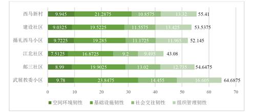 结果可知:江汉区老旧单位社区的整体韧性水平较差,有较大提升空间。