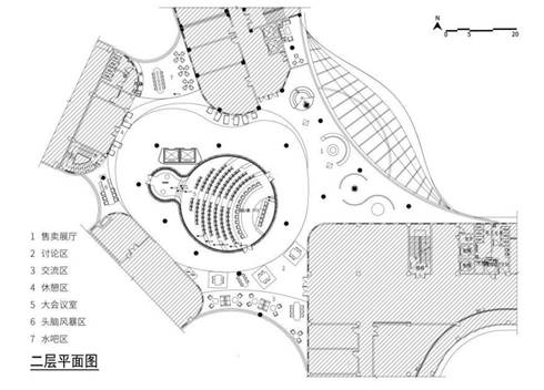 讲座集会区是一个大型的“开放广场”,各种类型的沟通交流都可以在这里发生。为了促进相遇,座椅设计成开放式结构,与阶梯相连接,动线的营造上更加自由与四通八达,员工可以像在社区公园一样在这里交流,从小型内部演示到大型活动,交流讲座空间可以满足不同目的的沟通。