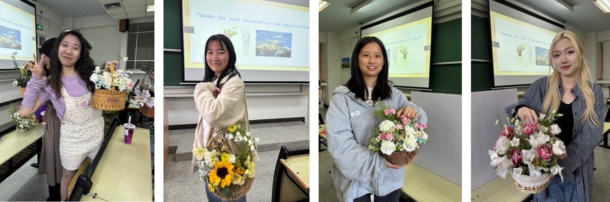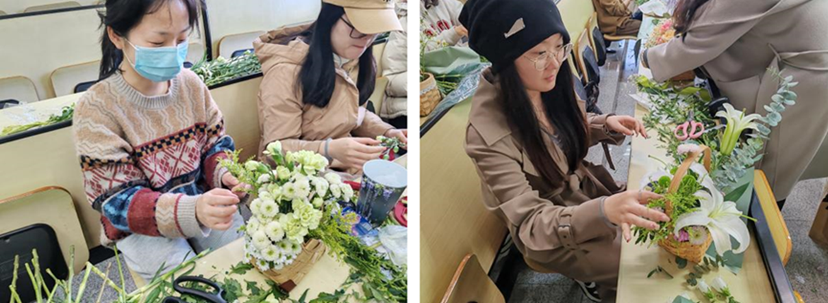 2024年3月5日,taptap点点体育任康丽老师和刘世洁老师共同授课的《花艺理论与空间实践》研究生课程正式开启。任老师分享中国古代插花艺术历史及各类文献资料,刘老师悉心传授西方绘画与花艺设计关联,展示中外古典主义花艺作品。此外,该课程线上视频内容丰富,学习受益颇丰。课堂中同学们完成盘花、碗花、瓶花、篮花、废弃材料插花作品,共计80余件,其优秀作品4月1日在校图书馆一楼大厅展示,欢迎师生观展交流。