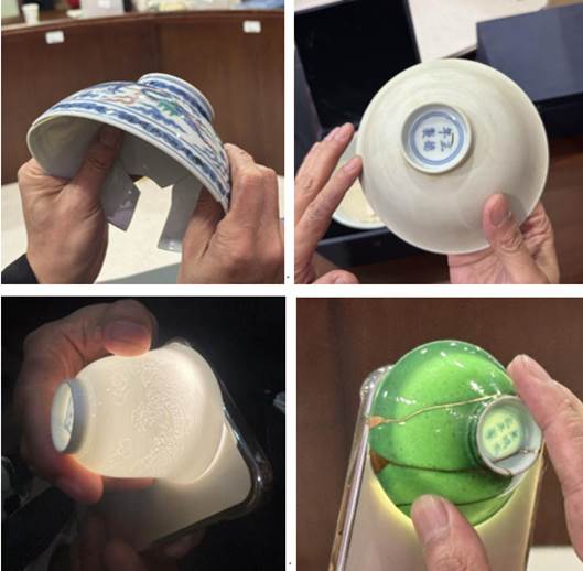 古陶瓷修缮是综合造型、雕塑、色彩、书法、绘画、工艺等特殊艺术创作,使残损之器重焕历史风姿,成为具有艺术观赏性的独立之器。古瓷残片虽非完整之器,但其附着的制作工艺、胎体材质、彩料釉色、画工神韵、磨损印迹是历史文明演变力证,对其修复时需持珍重态度,在潜心研究基础上精雕细琢,重点在于以最佳方式去进行器物修复。