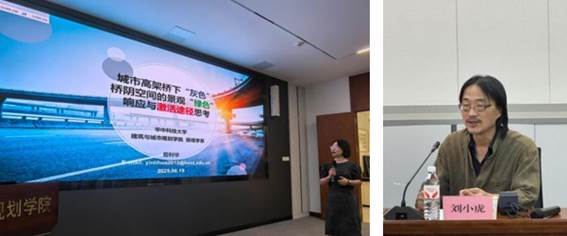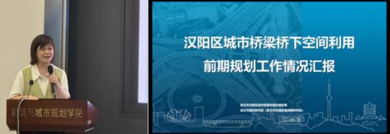 接下来,殷利华教授进行了《城市高架桥下“灰色”桥阴空间的景观“绿色”响应与激活途径思考》专题汇报。首先介绍了工程景观学科团队和个人研究方向主要关注桥、街道、雨水基础设施工程景观研究。今年5月就高架桥下空间利用开展了3次全国会议报告分享。殷利华指出城市高架桥是公共空间拓展潜力地,但桥下空间使用受桥墩柱结构、桥下空间的光、水、生态、社会等诸多问题困扰。课题组先后10多年,建构了以武汉为中心的国内城市高架桥下空间及景观的“东南西北四线”调研,发现各地对高架桥空间利用特点,如北京高架桥下的停车专门管理、广州桥下的文化创意园、成都高架桥下的文化氛围营造等常见的绿化、交通、运行、休闲、商业、建筑、市政利用及景观。最后提出国外有拆桥恢复活力案例,面对国内大量高架桥,可考虑利用新技术手段,如光纤导光、智能监测等多途径激活桥下空间利用,可以优化和转换角色,出台桥下空间利用管理的相关政策,积极有效、科学合理的开展桥阴空间利用的方式,为城市更新提供激活桥下空间,服务高质量人居生活改善的“低线公园”等公共活动场所空间。