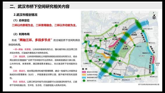 佘曼丽主任通过专题分享《汉阳区城市桥梁桥下空间利用前期规划工作情况汇报》详细介绍了武汉市桥梁空间利用现状、问题及规划。武汉主城区有656座城市桥梁,202座具空间利用价值,桥梁空间面积706万平方米。在空间利用规划方面,一环两轴以休闲模式为主;二环休闲游戏与公共服务结合;三环线侧重市政基础设施与郊野公园建设;节点打造亮点空间。但目前存在相关问题:部分桥梁空间利用形式单一、环境不佳、管理维护缺乏,且武汉缺乏桥梁空间使用管理政策。分享重庆北滨路桥梁空间打造24小时滨江文化综合体的经验,靠政策保障取得良好社会、经济、文化效益,值得武汉学习。在运营方面,提出考虑开发地块模型打包、引入社会资本,结合周边开发计划运营桥梁空间。建议选取小试点打造桥梁空间项目,缓解政府管理压力。