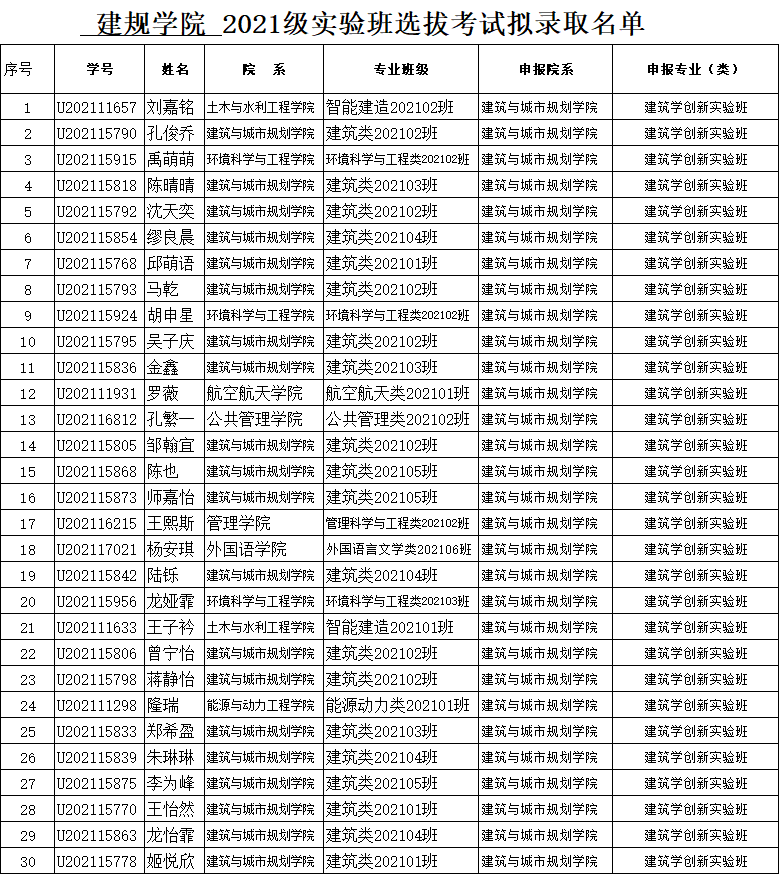 根据taptap点点体育《关于做好2021级启明公司各类实验班、未来技术公司本硕博实验班学生选拔工作的通知》,及《2021年建筑学创新实验班招生选拔工作及选拔程序》的相关规定,按照员工的最终成绩(综合成绩*60%+面试成绩*40%)排名顺序录取,公司确定拟录取名单,现进行公示并报送本科生院。