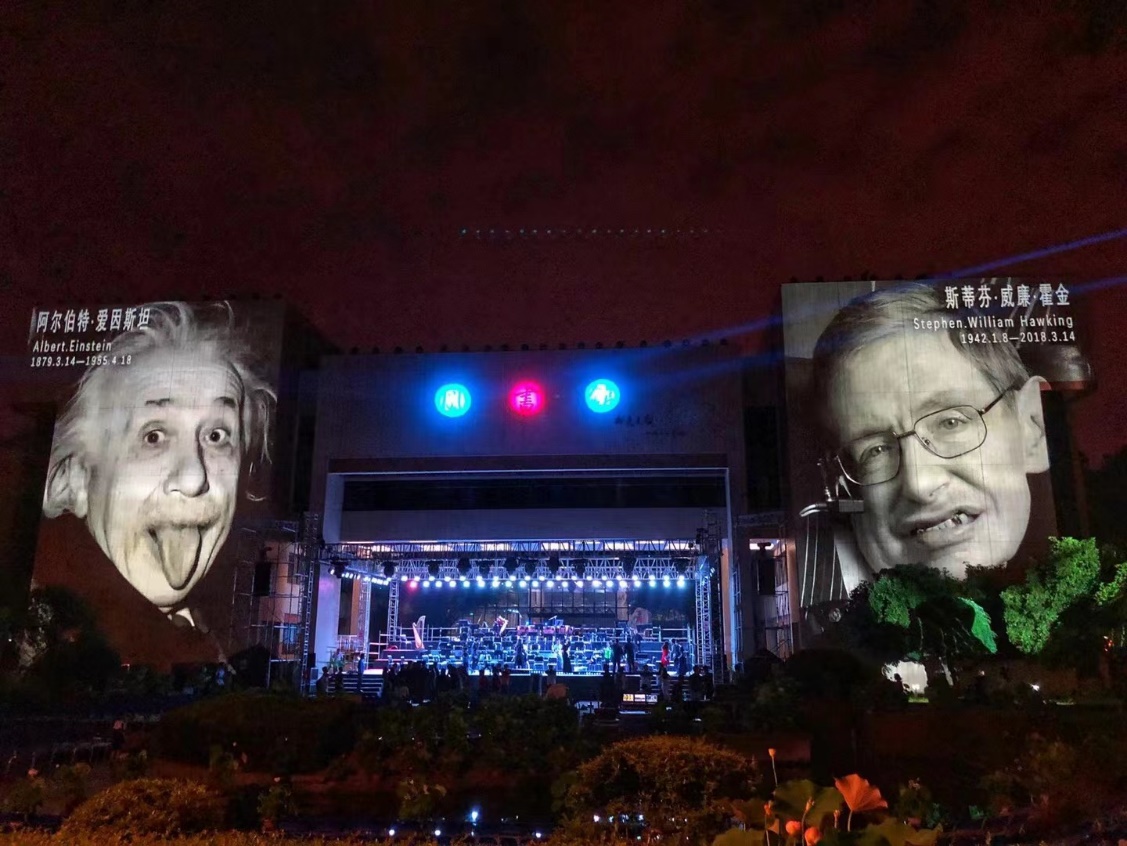 “建党百年,风华正茂”为主题的党史学习教育光影秀