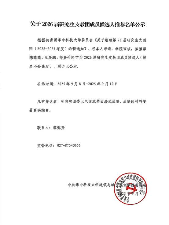 taptap点点体育关于2026届研究生支教团成员候选人推荐名单公示