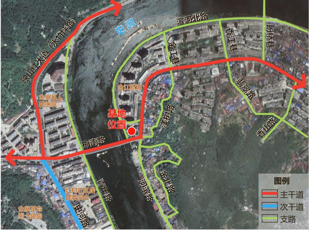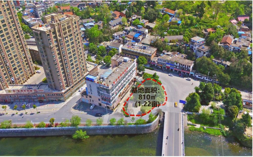 项目地块位于金寨县梅山老城区滨河北路东侧,金江新城西南侧,西临史河,周边为住宅小区,医院,烈士陵园等。现状为已建成街角游园,部分设施和功能有待改善提升,基地面积约810平方米(1.215亩),该场地将成为老城区有机更新的重要节点。