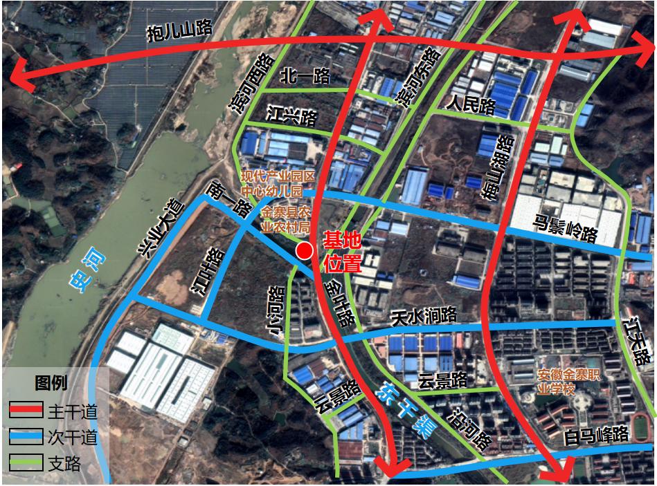 项目地块位于金寨县经济开发区抱儿山路北侧,仙花实验公司南侧。现状为空地,周边主要为小学、中学、居住小区、医院等,基地面积约37700平方米(56.55亩)。设计应充分体现“产城一体化”的发展思想,作为提升东部新城建设品质的重要抓手。