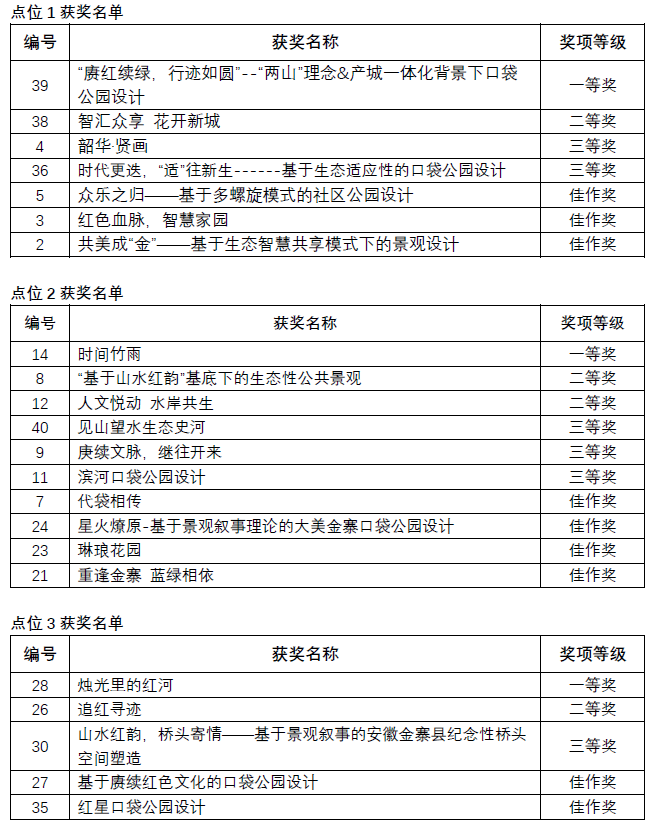 七、 “大美金寨”口袋公园方案设计竞赛评选结果/ Competition Award List