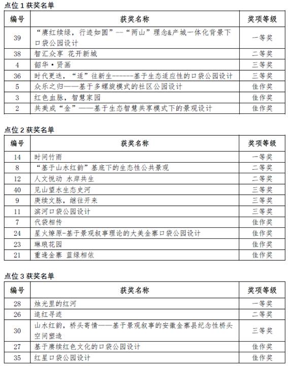 八、“大美金寨”口袋公园方案设计竞赛评选结果/ Competition Award List