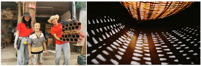 在特色老铺子里,居民们生动地讲述着古街昔日的繁华,仿佛带大家回到了过去。"筛选出好的竹节后,把竹经篾沿着木制的模具穿插编织,最后收尾锁口就行了。"竹篾鱼篓店的店主热情地讲述着竹篓制作工艺。队员陈心愉细细琢磨着形式各异、做工精致的编织品,赞叹不已。看到如今古街已不复当年"小汉口"的盛景,她感慨道:"这次调研让我看到了许多精致的手工艺品,我希望可以发挥专业特长,把它们改造成当下流行的样式,比如鱼篓灯,吸引更多人的关注。"
