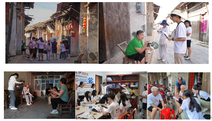 在烈日炙烤的街巷中,队员们一次次走进明清古街老建筑中,与古街居民近距离交流。队员们了解到,古街文化底蕴深厚,历史遗存亟待保护,居民们也对古街未来的保护与发展充满了期待。在特色老铺子里,居民们生动的讲述着古街昔日的繁华,仿佛带大家回到了过去。
