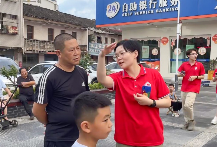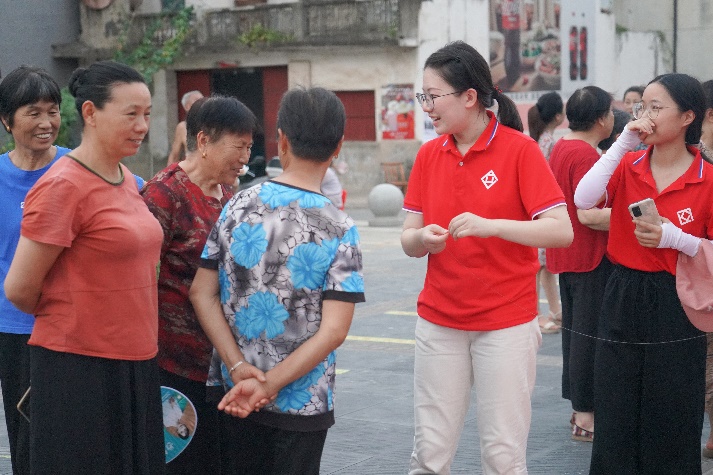 沿石板路走进小河古街,顺着屋檐零散地悬挂着几块碎布拼制而成的布帘。“古街到了夏天,特别是中午的时候,又热又晒,把家里闲置的布块挂起来遮阳,大家才愿意在我们店门口买东西嘞。”家门口搭个布,下午搬个凳子就可以在下面聊天乘凉了。乡民带着同学们沉浸式体验了一番古街生活。