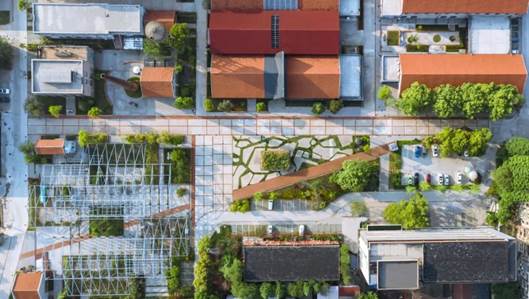 UAO配合中信院完成的位于汉口老租界,前身是英租界的青岛路片区项目,包括场地梳理、景观规划、室内公区改造局部小建筑设计等内容。保护文保建筑、延续场地肌理、打造中心轴线和广场,提升设计明确的导向性和疏散、植入新的现代元素,和百年历史建筑形成鲜明的对比——新旧并置,和谐共生。项目建成后,陆续吸引文创、视频、国潮等潮流企业入驻,并成为小红书上炙手可热的打卡圣地。