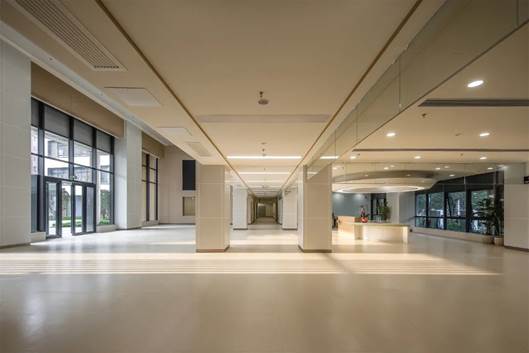 本项目位于珠海市南屏片区珠海大道南侧西南侧相邻地块为幼儿园用地,在建筑的西南角设置两层高的架空场地,从外到内形成过渡灰空间,希望通过此公共空间与幼儿园场地发生呼应,为项目预留“老幼复合型+嵌入式医养”结合的模式预留可能性。