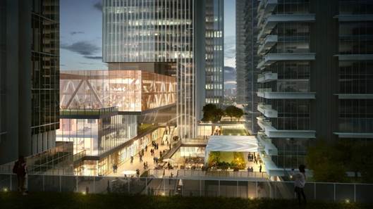 本项目基于对阿里巴巴企业文化的研究与挖掘,以及阿里巴巴对办公产业与商业互动结合的需求,设计师创造性地提出了“阿里立体校园AliCampus”的概念。在赋予传统商办功能全新的理念的同时,叠加延伸出“挑战空间”,“迭代空间”,“韧性空间”和“治愈空间”等创新理念空间,积极面向未来年轻客群,为同质化严重的城市综合项目注入新鲜话题。