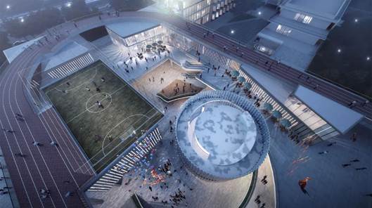 本项目将商业、办公和剧院集中起来。形成一个整体,布局上让三者咬合更加紧密,留出南侧广场用于剧院人群集散及商业广场展示。在广场地面以下,穿越市政道路与相邻地块整体相连接的地下车库与商业街,为城市活动的快节奏切换提供了可能。