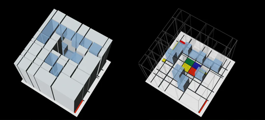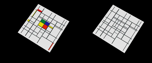 借由绘画的基本元素:直线和直角(水平与垂直)、三原色(红黄蓝)和三个非色素(白、灰、黑),这些有限的图案意义与抽象相互结合,象征构成自然的力量和自然本身,静观万物内部的安静。