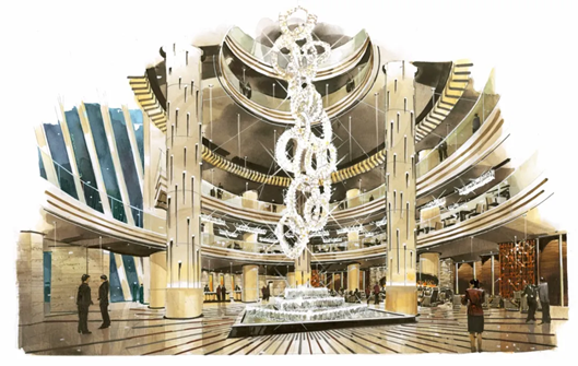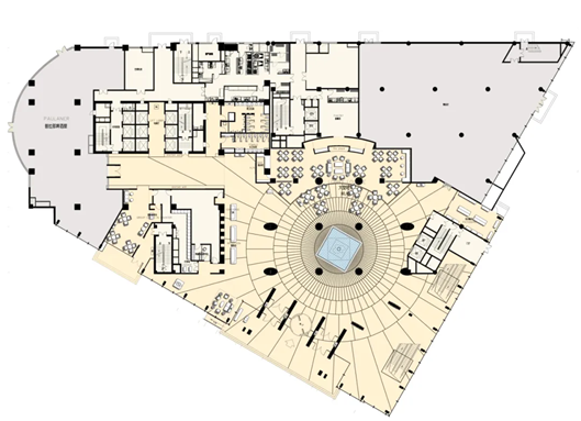 客房楼高度100米,27层,标准层为椭圆形平面。裙房5层。设计目的是在原有紧凑的建筑体型增加一个楔形玻璃块,作为酒店的中庭,面向南侧的千禧世纪广场。作为酒店的活力空间,它有效地扩大了酒店公共区域,也成为客人和市民可以休閒的地方。