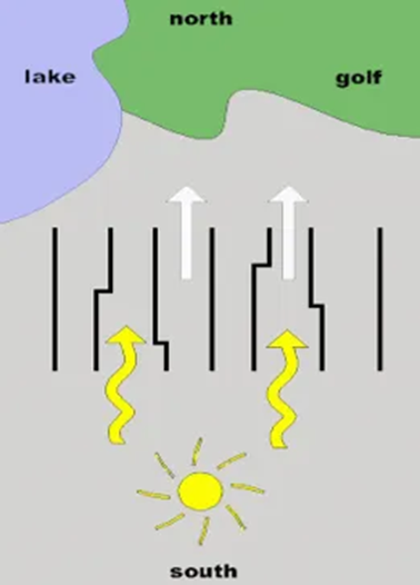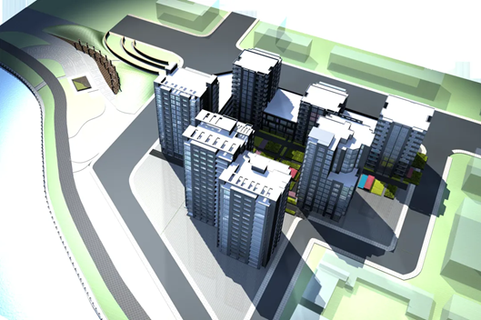 由于每块用地进深不同,建筑呈现出错落有致的布局。
