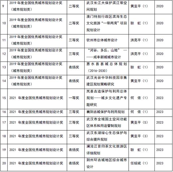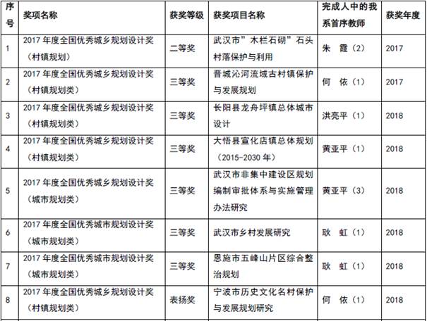 2017年以来城市规划系教师的国家级设计实践获奖