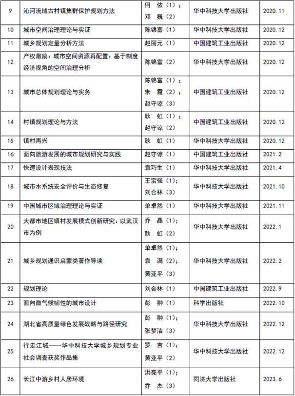 城市规划系坚持学术引领,近五年累计发表SCI、SSCI、CSSCI、CSCD等期刊论文300余篇,2019年以来相继出版学术专著、译著、教材和作品集30余部,12部教材获住建部“十三五”及“十四五”规划教材立项。