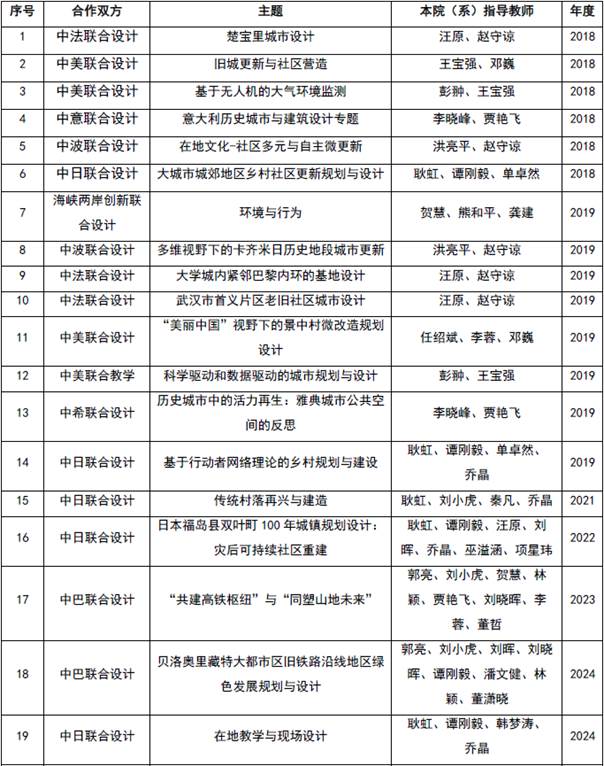 2018年以来城市规划系开展的部分联合教学与联合设计