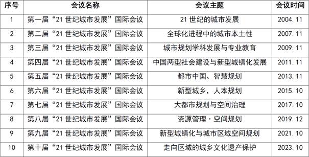 已举办的前十届“21世纪城市发展”国际会议主题及时间